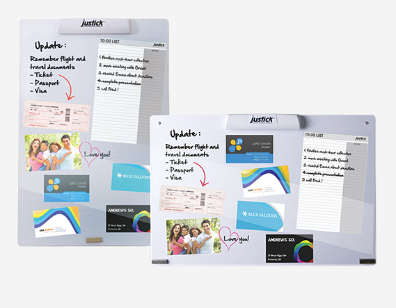 With this triple function whiteboard you can write, display and interact. Firstly, use it as a high quality dry-erase whiteboard that will not ghost or stain. Secondly, lift the Clearview dry-erase Overlay and place notices, reminders, illustrations, Justick™ Templates or training materials on the Justick white surface. Thirdly, use a whiteboard marker to interact and illustrate your instructions and concepts without marking the original items. The ultimate collaboration tool.